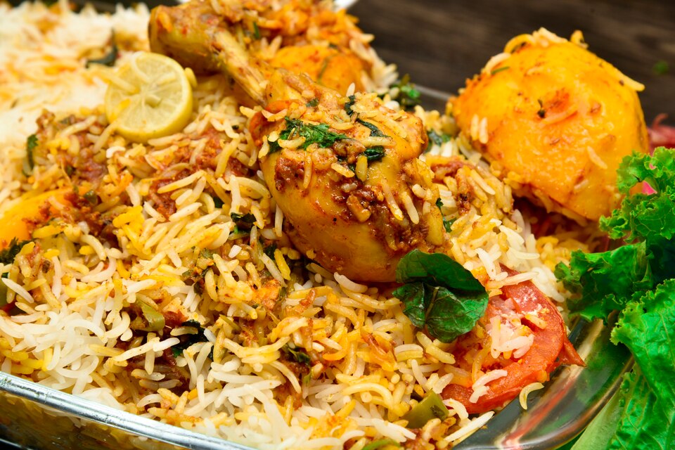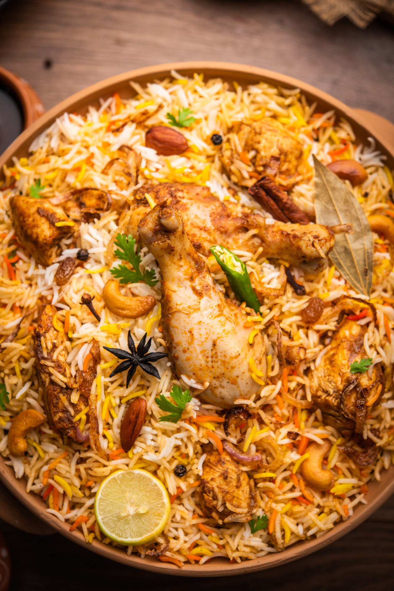 Fragrant basmati rice layered with tender meat, aromatic spices, and saffron.
